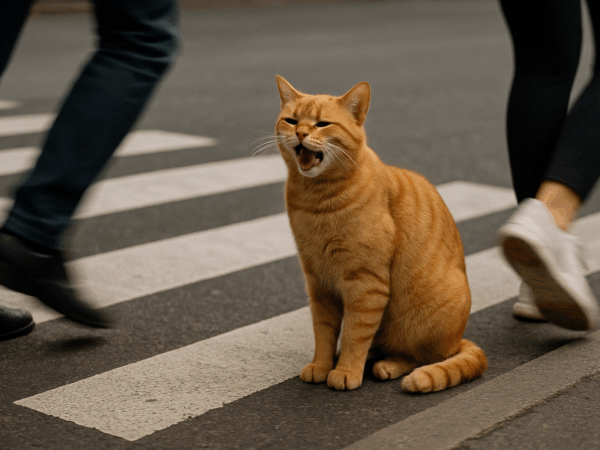 Ilmiö on kerännyt jo yli 1,2 miljoonaa katselukertaa sosiaalisessa mediassa. Videolla kissa jopa maukuu autoille, jotka eivät malta pysähtyä.